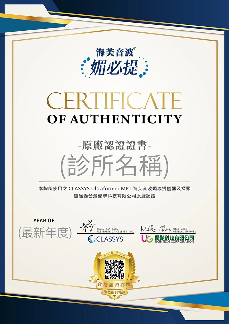 - 掃描證書上的QR code至海芙官網,再次確認診所是否在認證名單上。